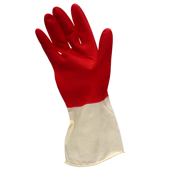 Перчатки хозяйственные латексные сверхпрочные БИКОЛОР М (белый+-красный)Komfi/144/12